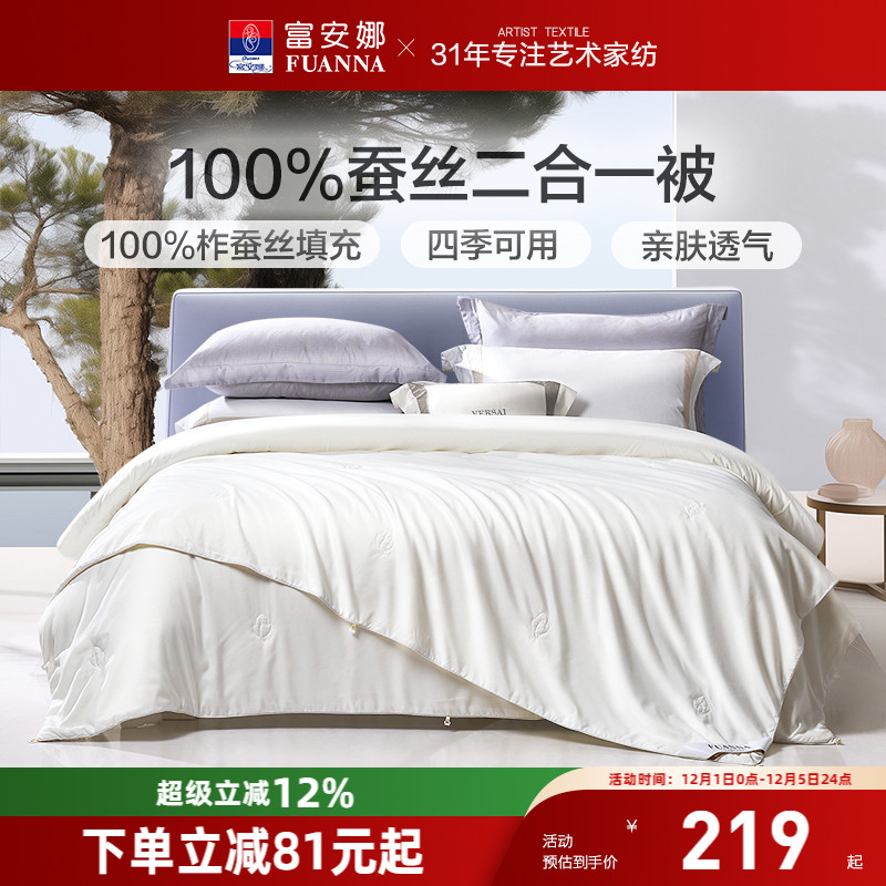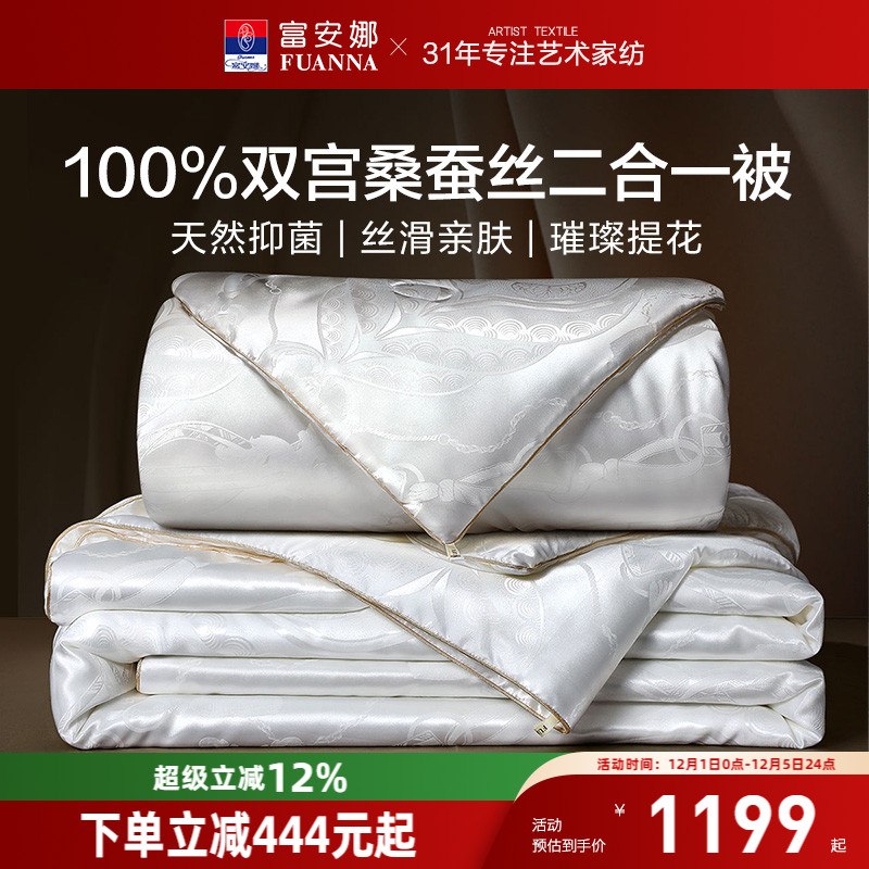 富安娜被子100%蚕丝被夏凉被冬被四季通用二合一子母被薄春秋被芯