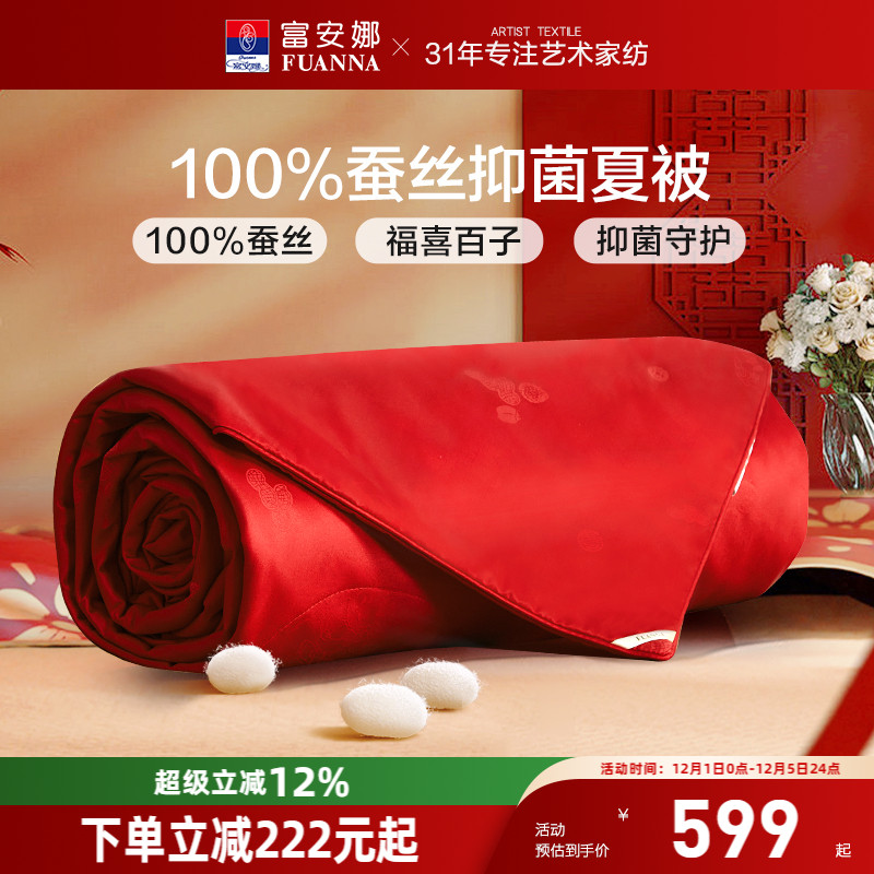 富安娜蚕丝被芯结婚喜庆大红夏被四季春秋被子婚庆空调被新婚喜被