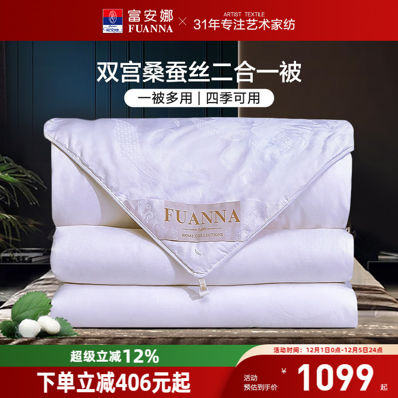 富安娜被子100%桑蚕丝被冬被四季通用二合一被芯结婚空调被春秋被