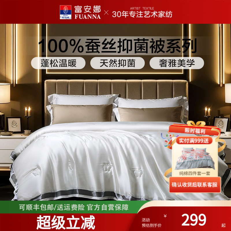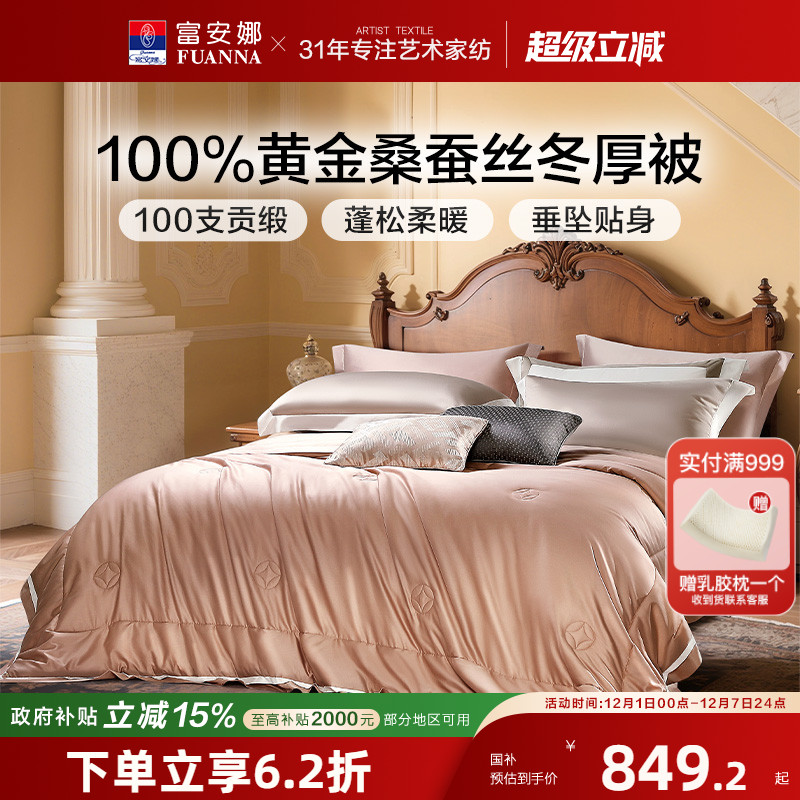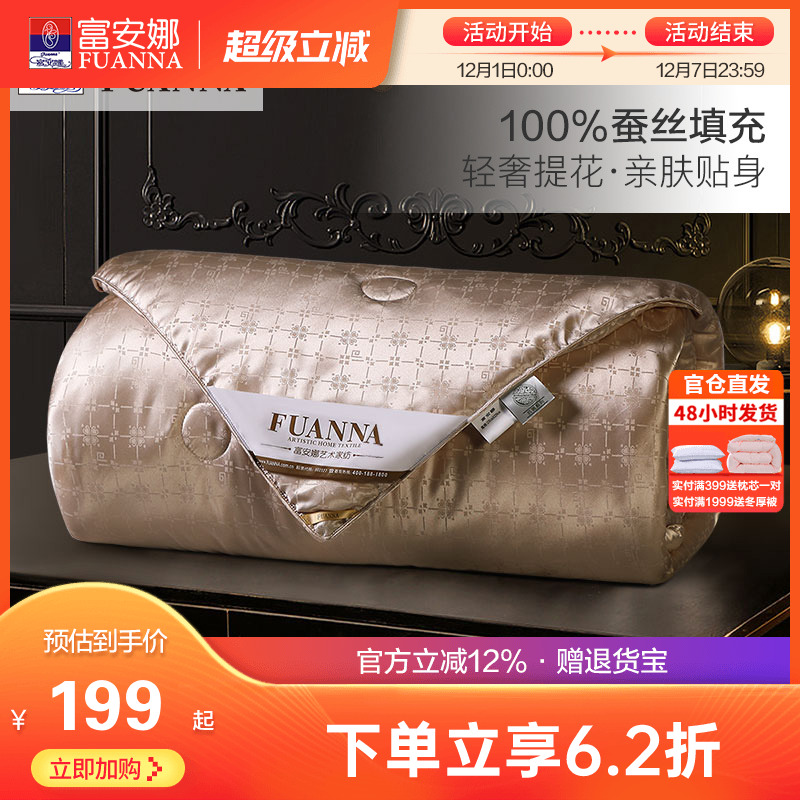 富安娜蚕丝被100桑蚕丝被子冬被春秋被床上用品单双人保暖厚被芯