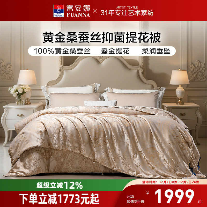 富安娜蚕丝被100%桑蚕丝黄金丝春秋被双人子母被芯冬被轻奢被子