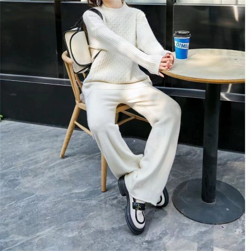 欧洲站2025秋冬欧货新款懒散风圆领羊毛毛衣+针织阔腿裤套装女潮