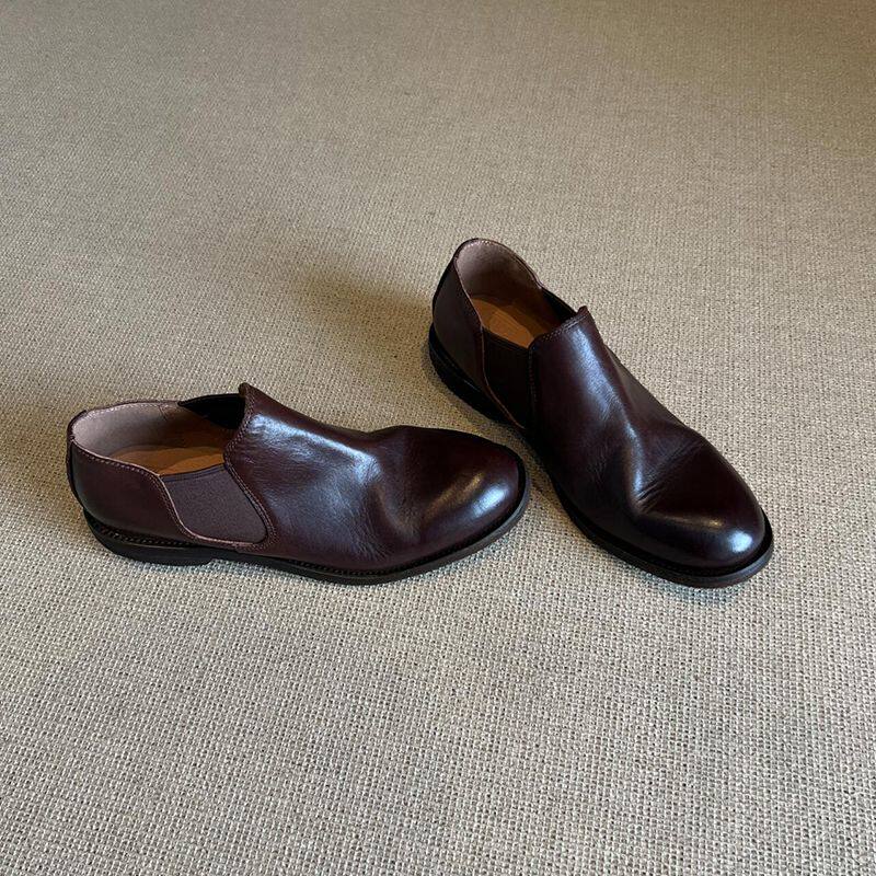 复古百搭通勤小皮鞋舒适平底圆头切尔西单鞋一脚蹬乐福鞋男女潮款