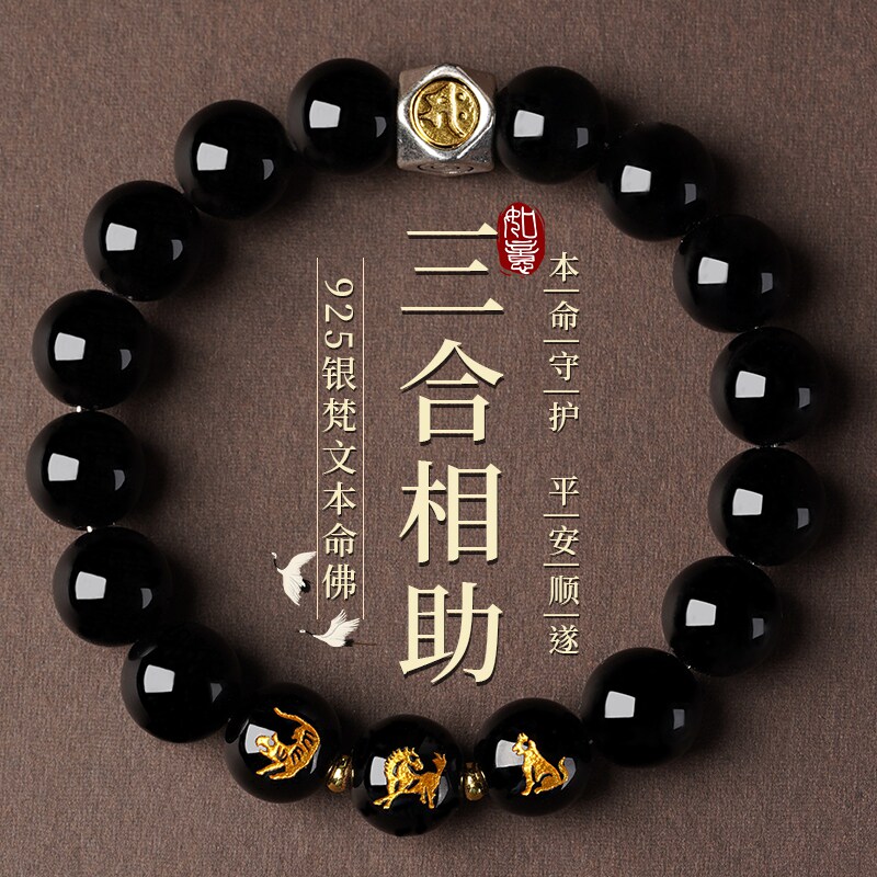- 天然黑曜石手链