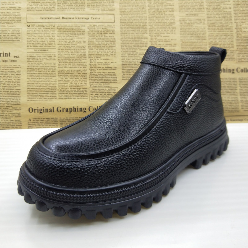 真皮头层牛皮厚绒真毛羊毛侧拉链防滑圆头冬季防滑马丁靴爸爸男靴
