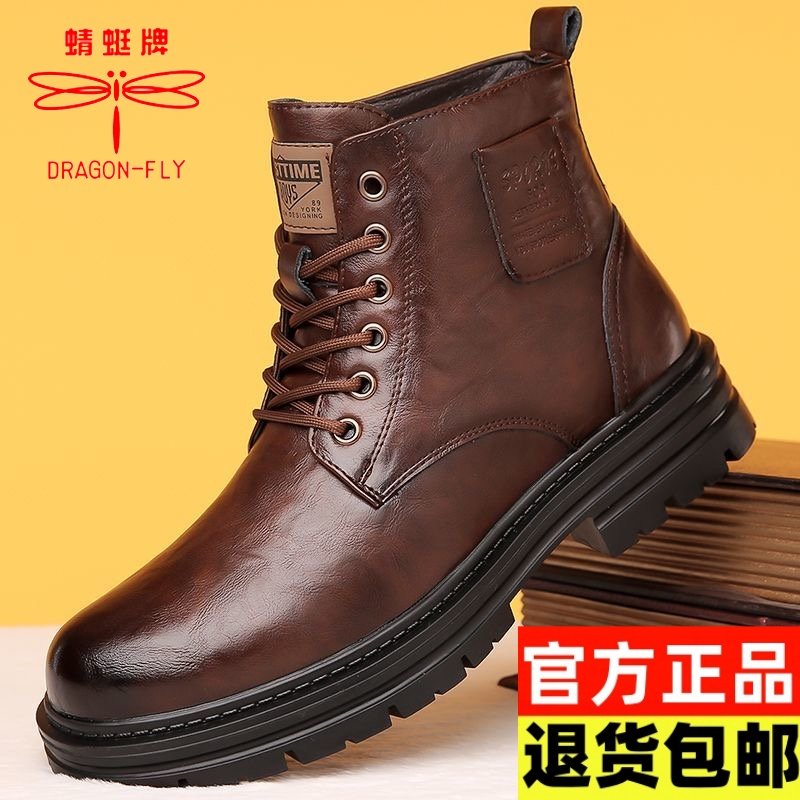 马丁靴男真皮休闲皮鞋秋冬百搭系带英伦加绒保暖棉鞋耐磨高帮男靴