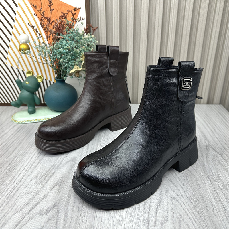 2025秋冬季新款撤柜折扣后拉链粗跟中跟加绒保暖英伦马丁靴女短靴