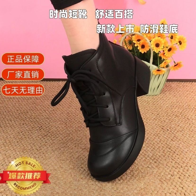 2025冬季真皮英伦马丁靴女短靴系带粗跟时尚百搭加绒靴子妈妈皮鞋