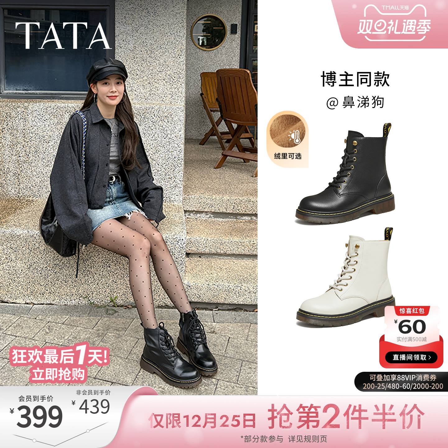 Tata他她靴子经典英伦风复古加绒马丁靴厚底女靴真皮短靴WUY02DZ4