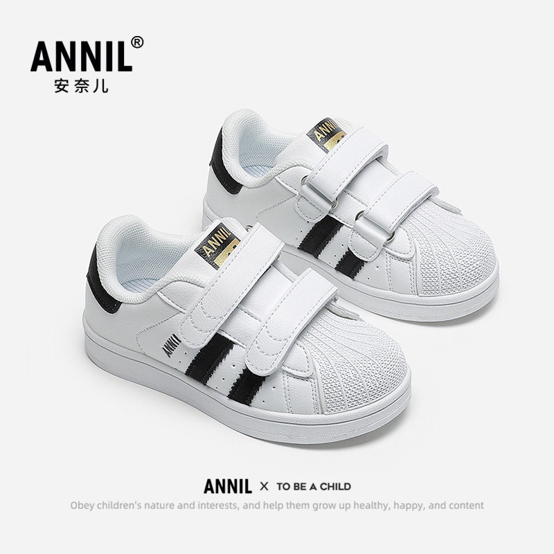 安奈儿男童贝壳头板鞋2025新款秋冬幼儿园宝宝小白鞋儿童运动鞋子