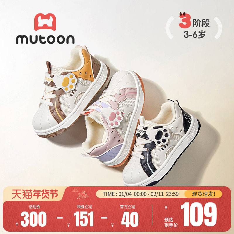 牧童儿童板鞋春秋轻便软底贝壳头男童鞋小猫吃鱼卡通休闲运动鞋女