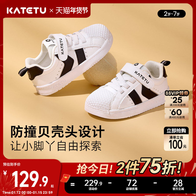 泰兰尼斯男宝宝学步鞋春秋新款贝壳头儿童板鞋女童防撞休闲机能鞋