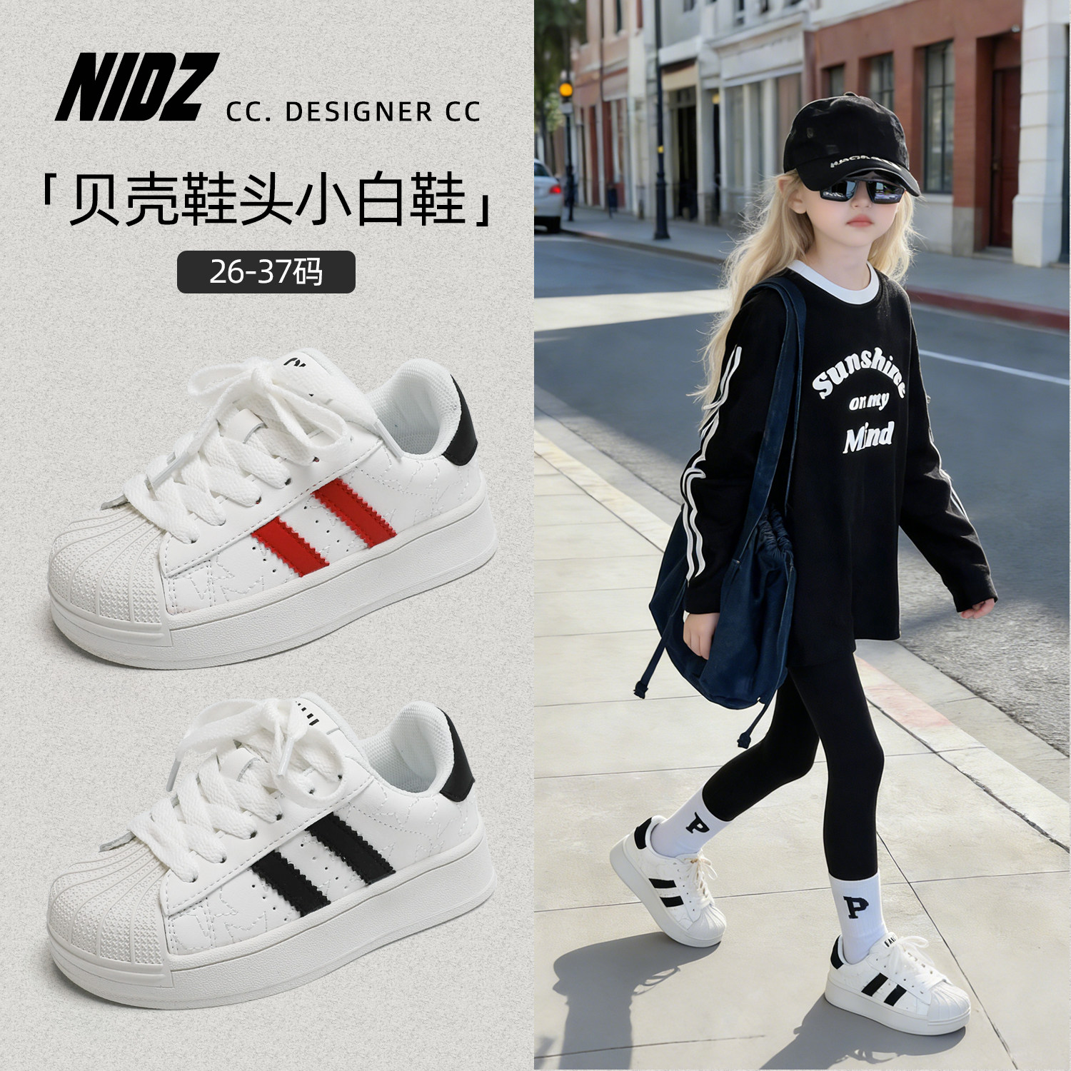 NIDZ贝壳头儿童板鞋2026春季新款女童百搭小白鞋男童休闲运动鞋子