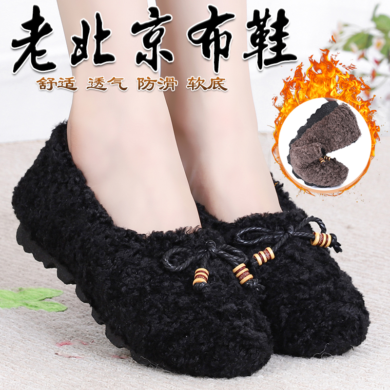 老北京布鞋女棉鞋冬季加绒妈妈鞋保暖鞋平底豆豆鞋毛毛鞋外穿棉鞋