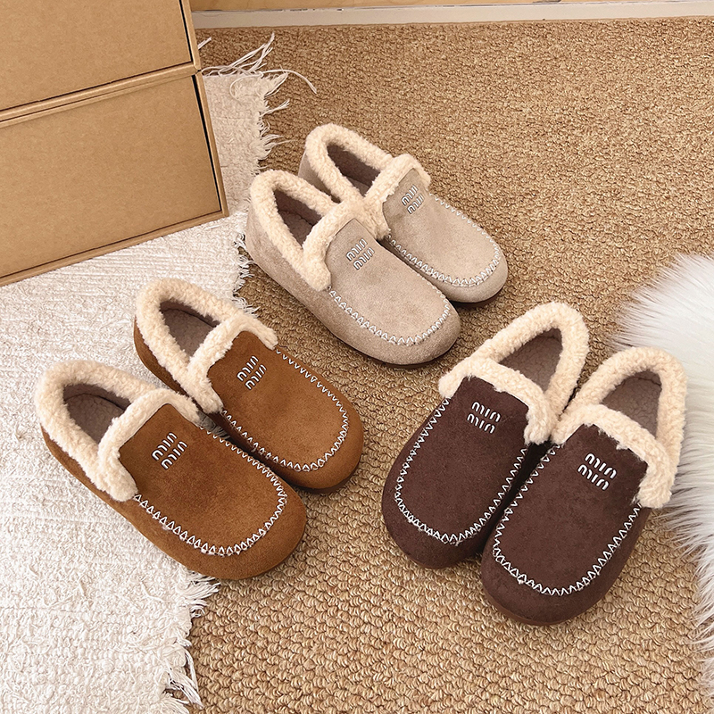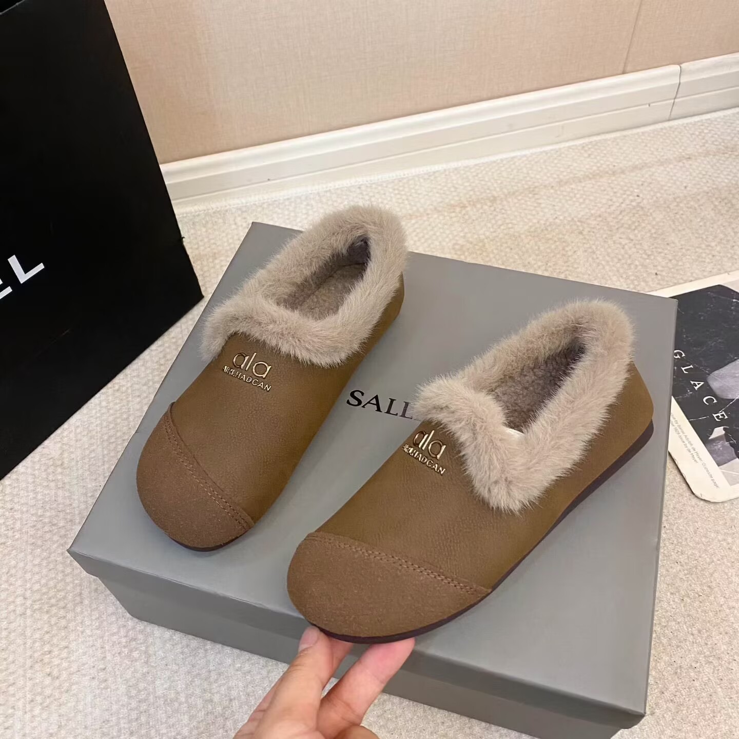女士加绒保暖女鞋2025年冬季新款豆豆鞋毛毛鞋软底舒适休闲鞋棉鞋