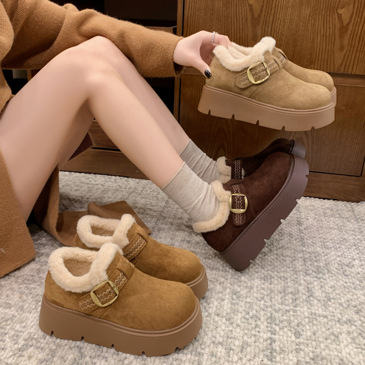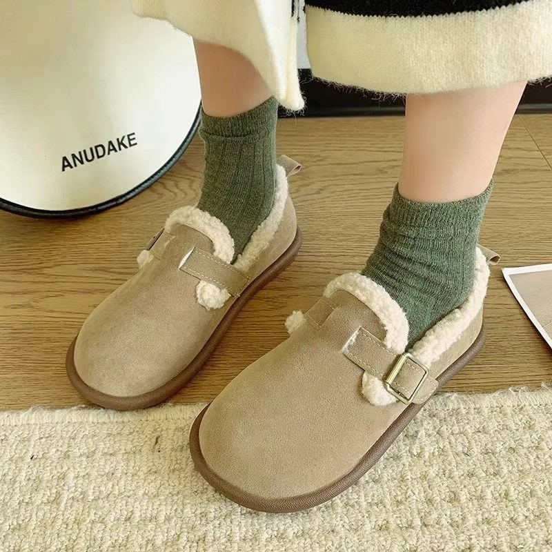 加绒全包复古勃肯鞋女款2025秋冬新款东北棉鞋豆豆鞋毛毛鞋雪地靴