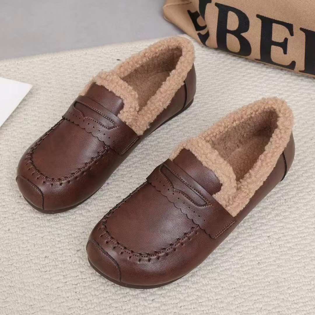平底鞋2025新款冬季加绒加厚保暖鞋女皮鞋一脚蹬豆豆鞋毛毛鞋妈妈
