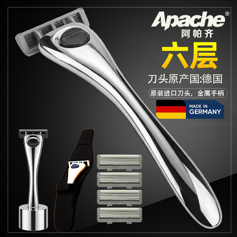阿帕齐手动剃须刀德国6层进口刀片刀头阿帕奇刮胡刀手动剃胡子刀