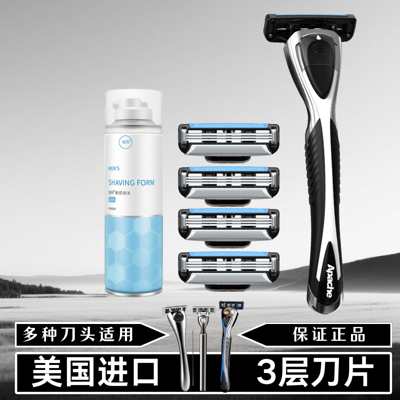 阿帕齐剃须刀手动刮胡刀5层剃须刀片老式刮脸刀头刀架五层刀片男
