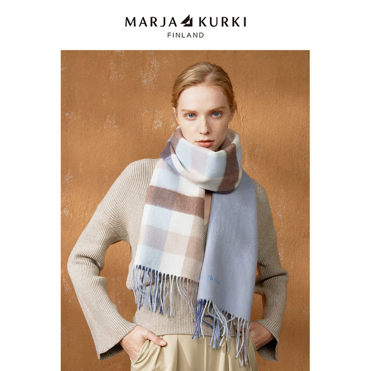 MARJAKURKI玛丽亚古琦双面羊毛羊绒围巾女冬季高级感红色格子围巾