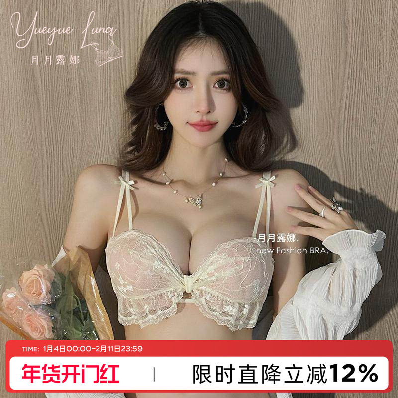 内衣女性感蕾丝新款小胸聚拢显大收副乳防下垂调整型文胸套装夏季
