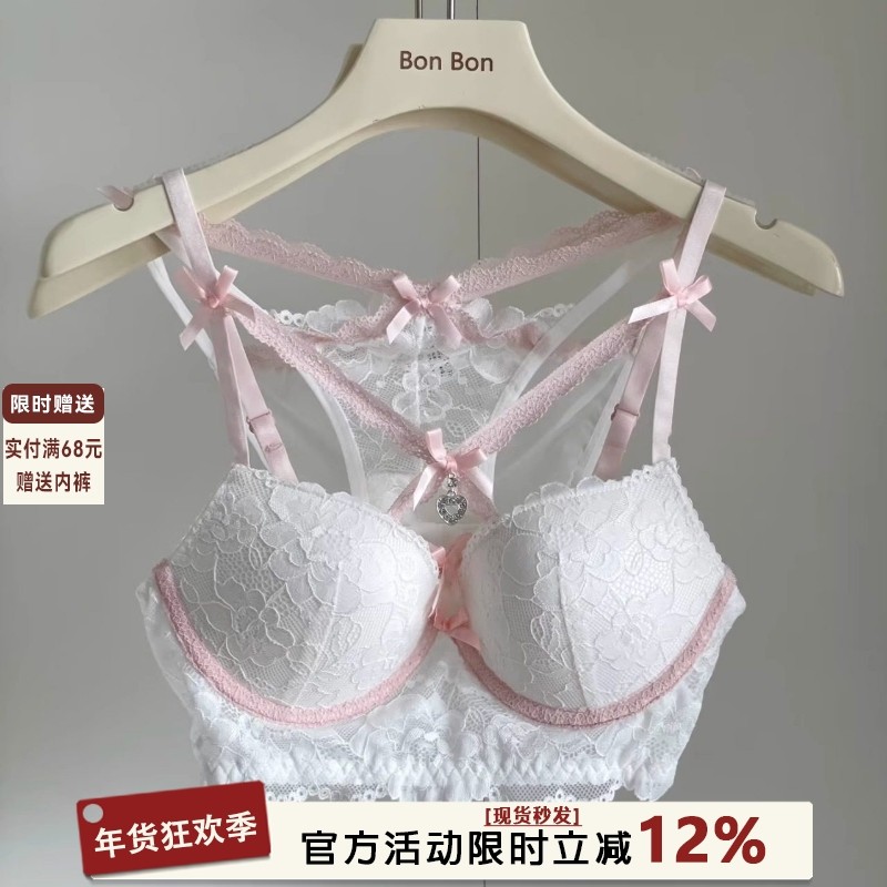 六只兔子小爱心蕾丝内衣女小胸聚拢性感纯欲上托防下垂文胸罩套装