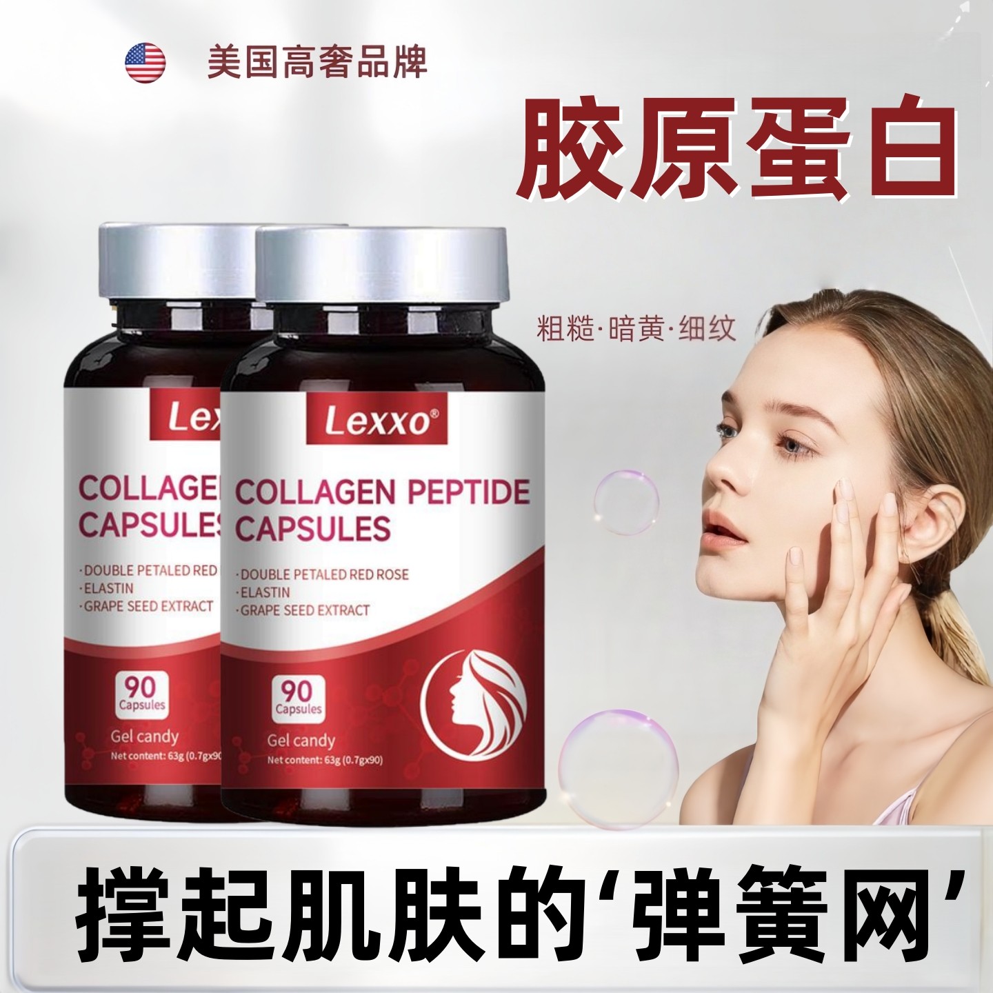 美国品牌葡萄籽胶原蛋白肽双抗糖衰老玫瑰女性内调滋补品软胶囊le
