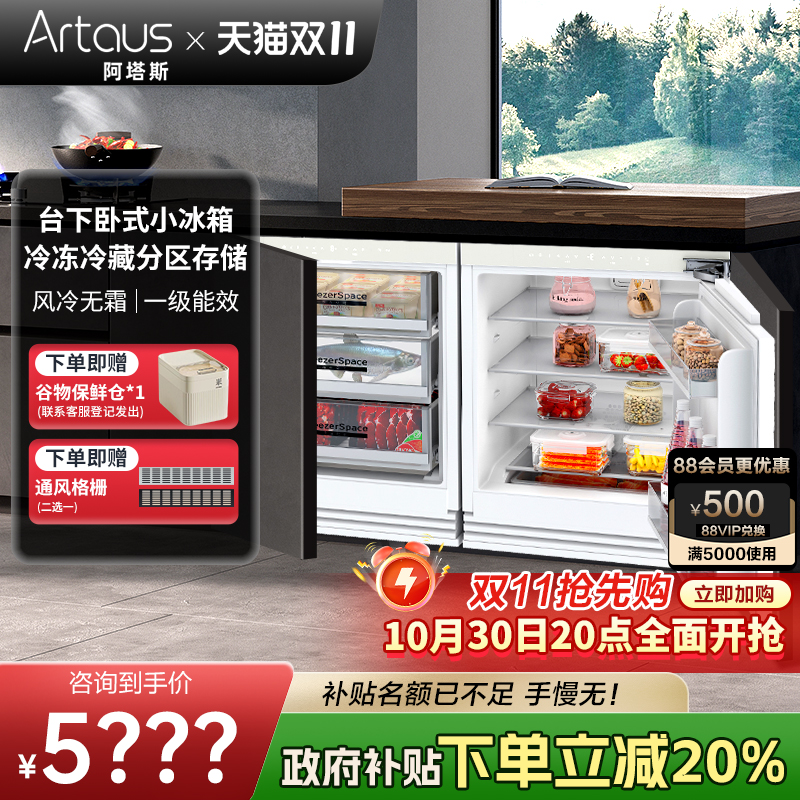 阿塔斯z241全嵌入式台下卧式橱柜隐藏式家用超薄内嵌式岛台小冰箱