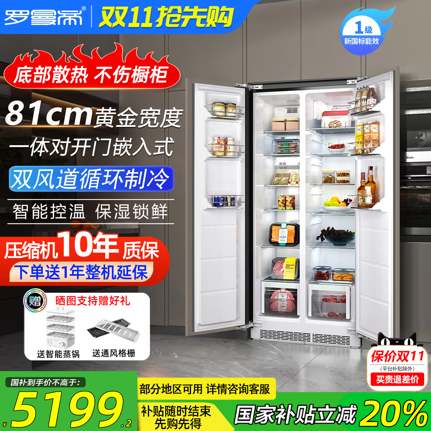 罗曼帝全嵌入式内嵌冰箱超薄一体柜底部散热隐藏式橱柜冰箱400升