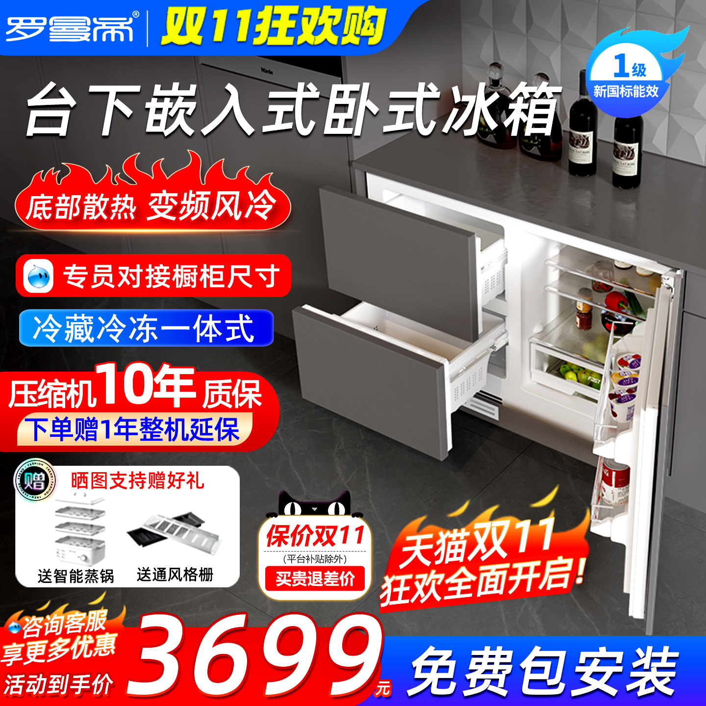 罗曼帝全嵌入式台下内嵌橱柜隐藏式超薄冷藏冷冻柜家用卧式小冰箱