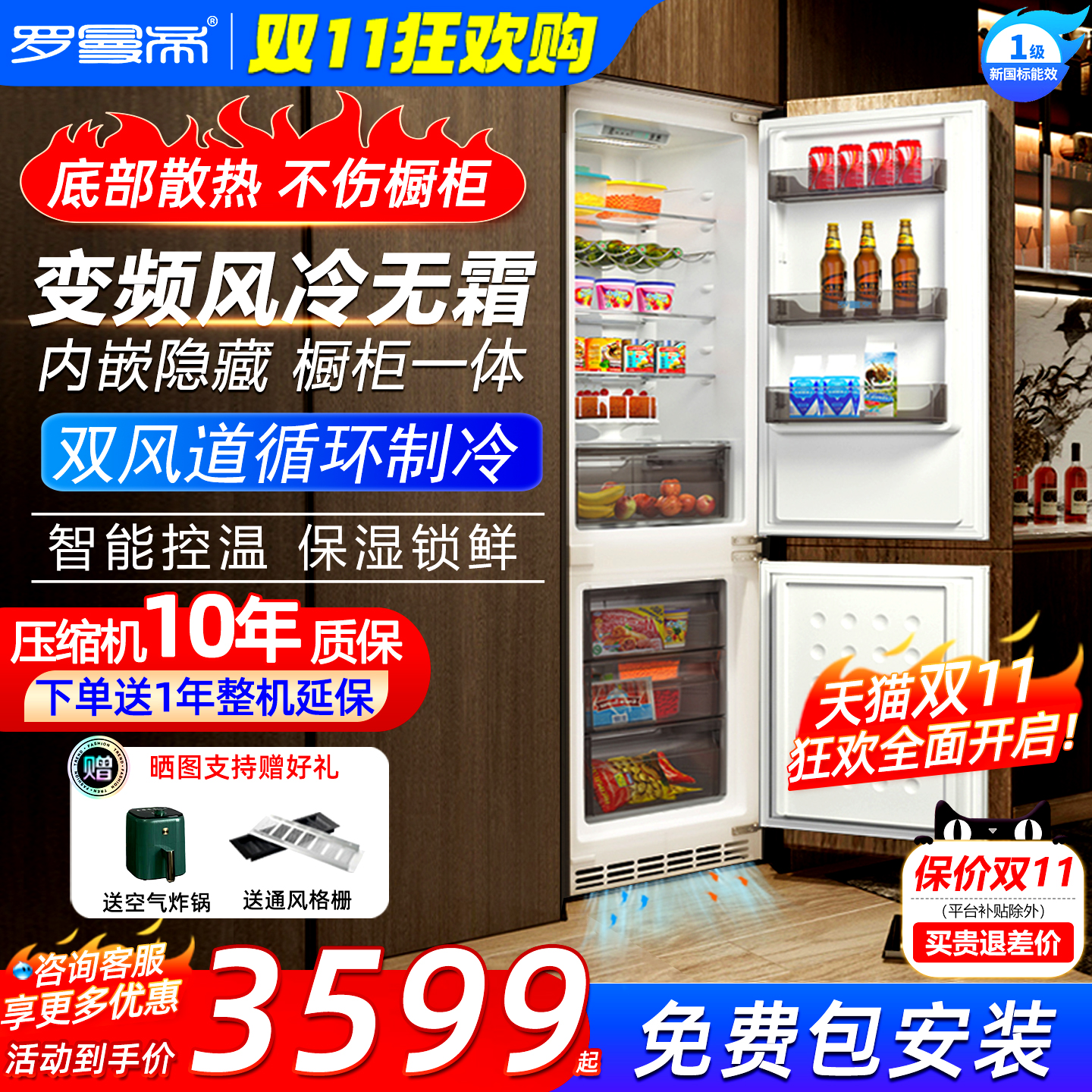罗曼帝变频风冷全嵌入式家用超薄橱柜隐藏内嵌式双开门电冰箱232L