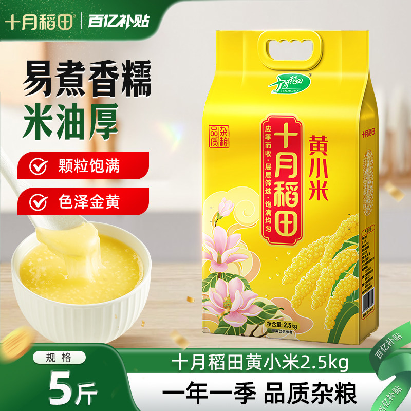 十月稻田黄小米熬粥煮饭小米粥粗粮五谷杂粮米油黄米5斤真空官方