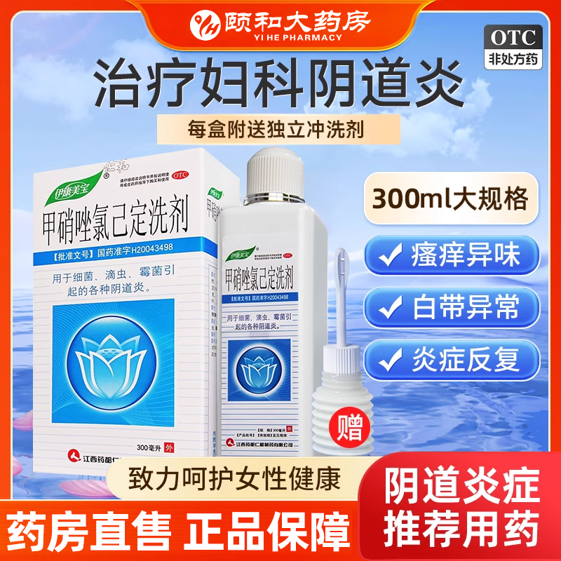 伊人 甲硝唑氯己定洗剂 50ml*7瓶 300ml*1瓶 甲硝锉已定 妇科洗液