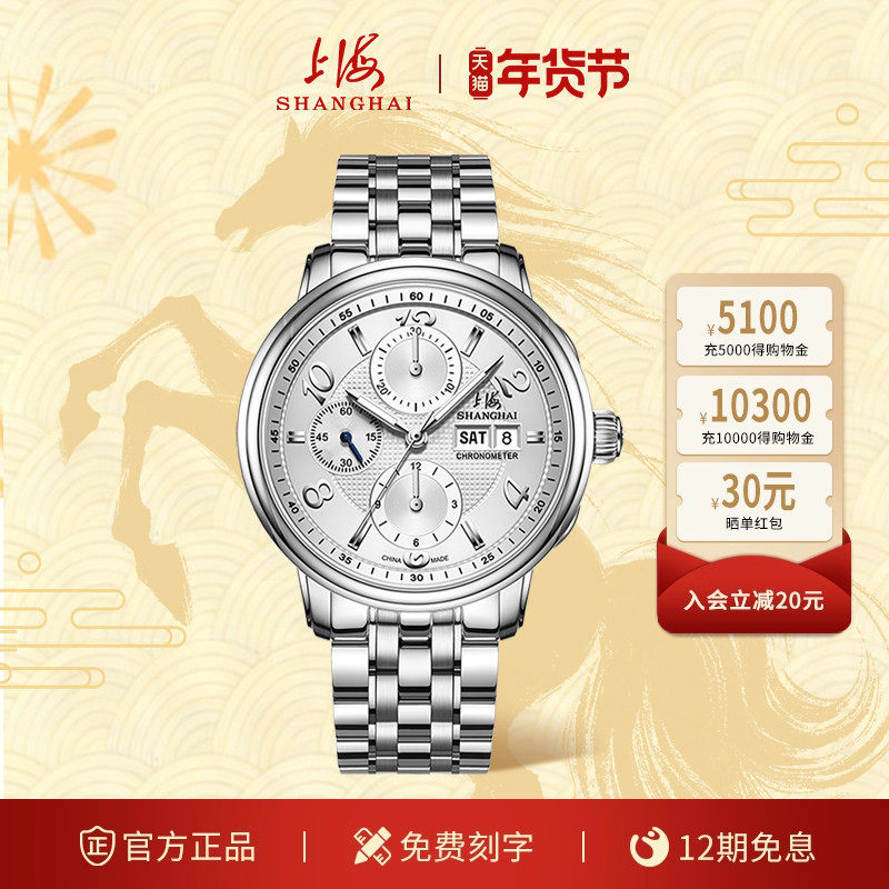 上海手表官方旗舰店多功能计时跑马表防水夜光男士自动机械表9001