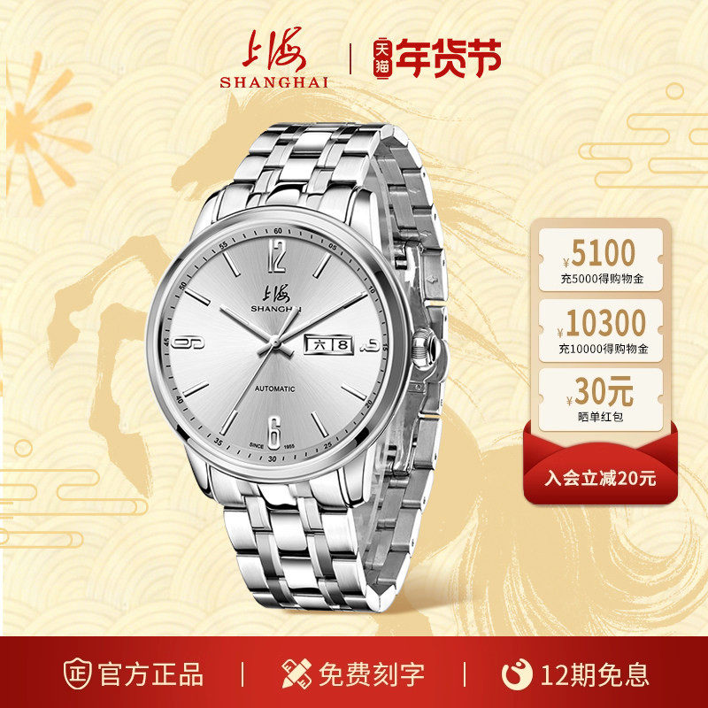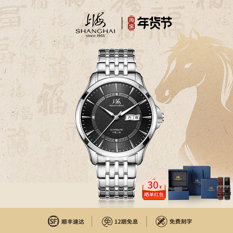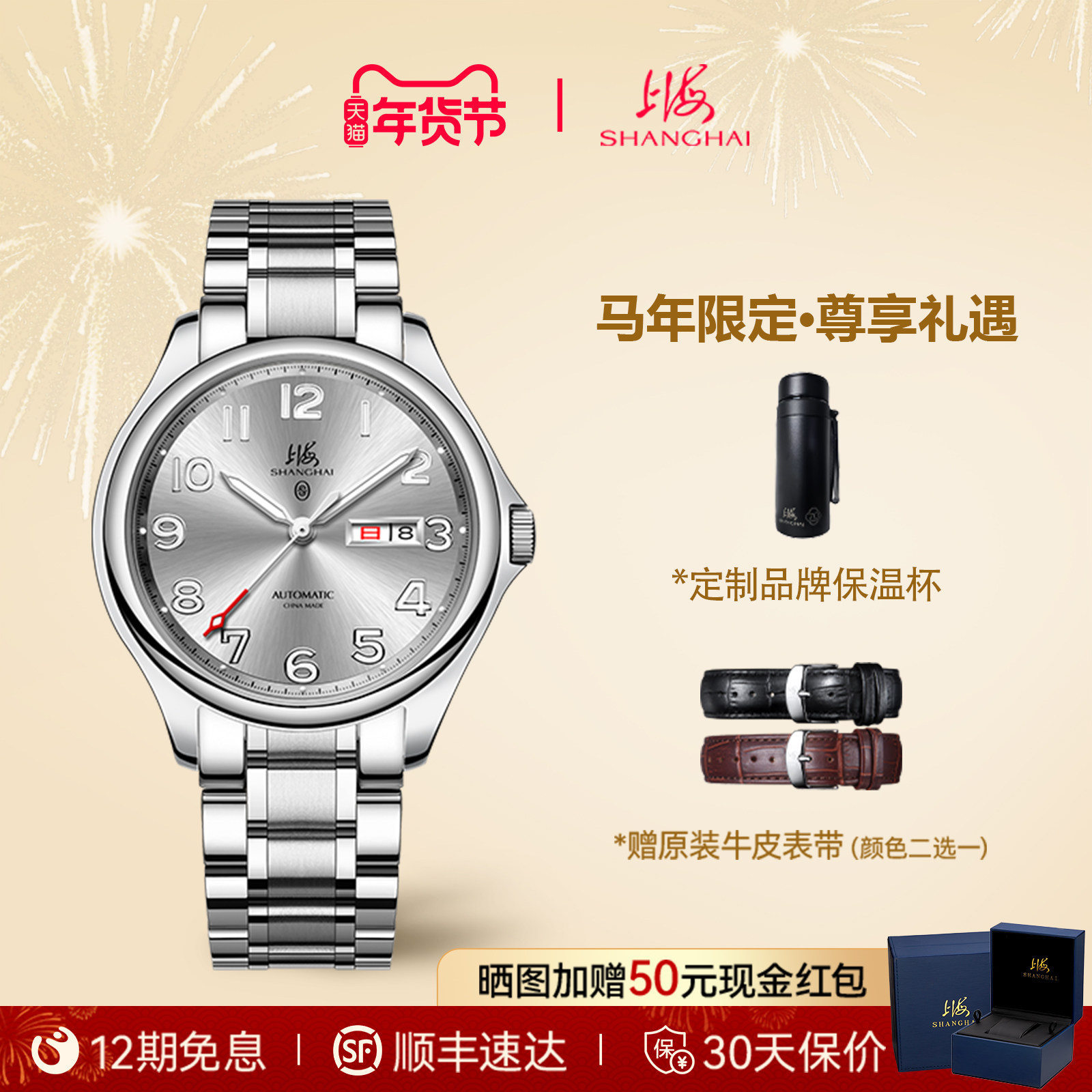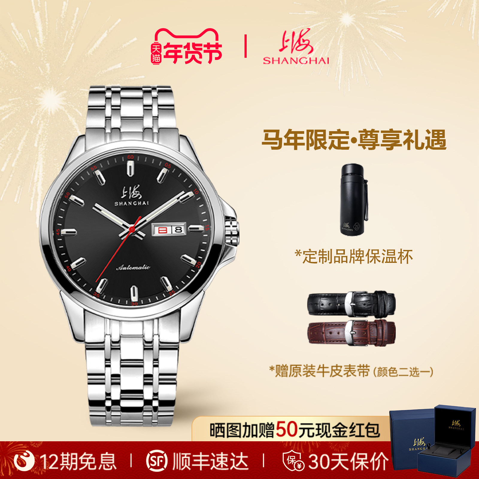 【年货送礼】上海手表3069自动机械表男65周年纪念表日历夜光钻石