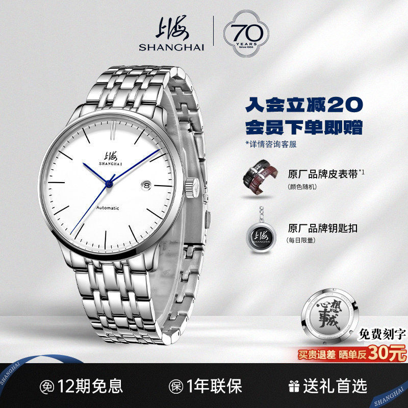 【70周年】上海手表男款国民系列简约商务经典时尚机械表3069