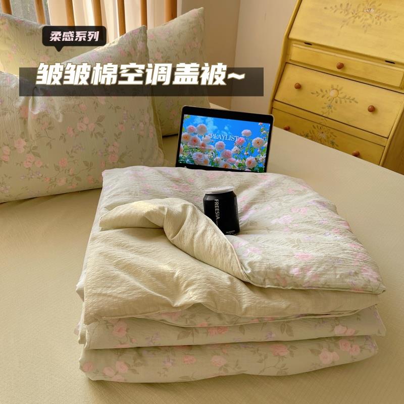 夏季空调被纯棉全棉四件套可机洗双人薄款大豆被芯学生宿舍夏凉被
