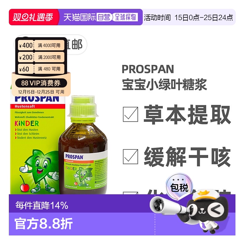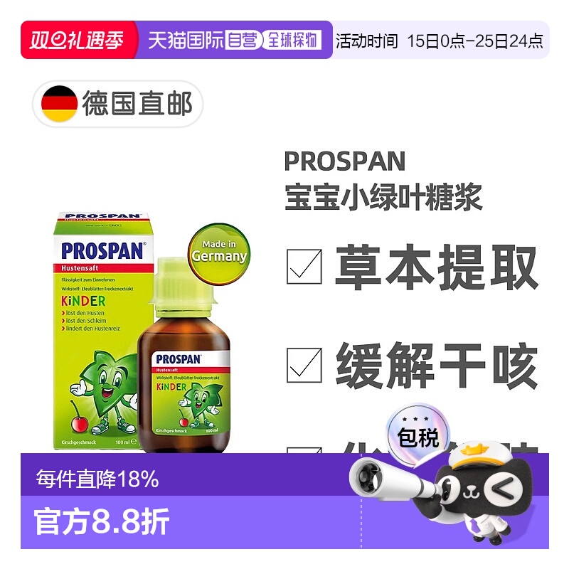 港版prospan德国小绿叶止咳糖浆幼儿童咳嗽化痰保咳定驱痰止咳露