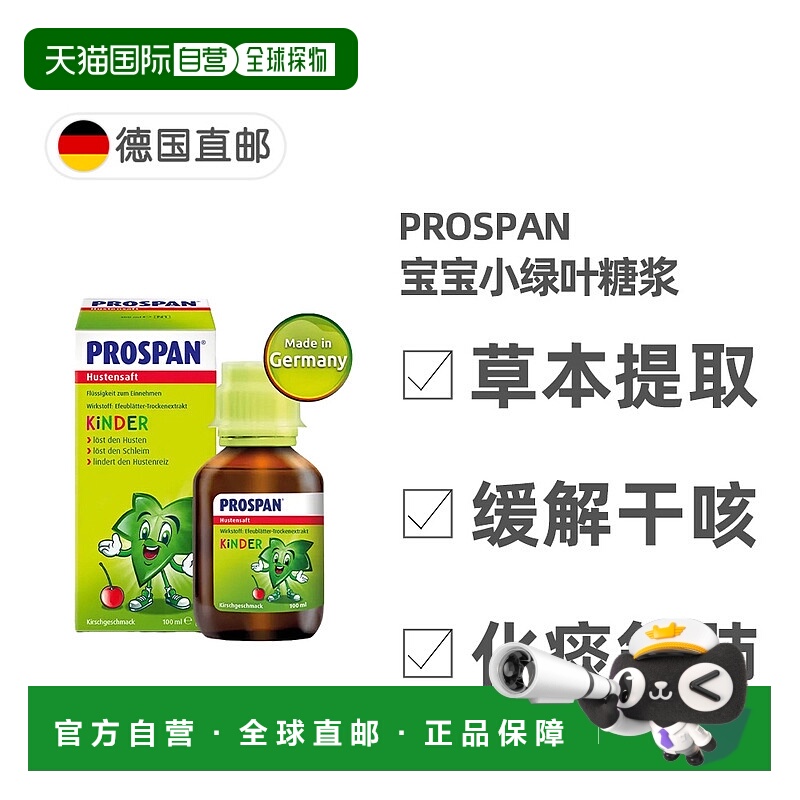 【自营】prospan德国小绿叶儿童化痰口服液止咳糖浆咳嗽药100ml