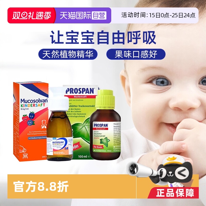 【自营】prospan德国小绿叶儿童化痰口服液止咳糖浆咳嗽药100ml*2