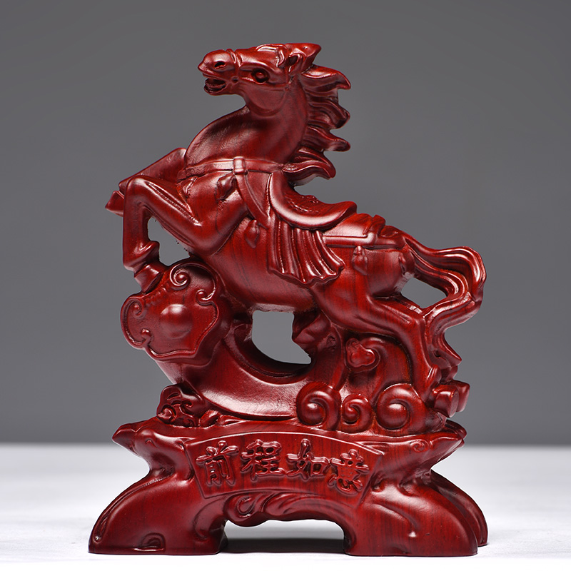 实木雕刻十二生肖马摆件红色木马到成功吉祥物家居装饰木质工艺品