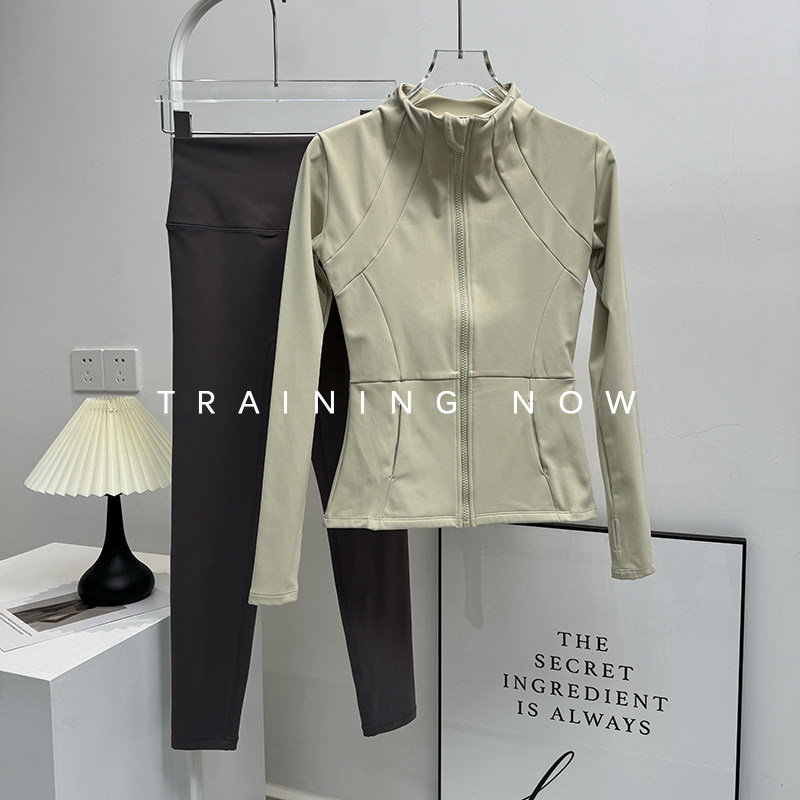 法国轻奢运动套装女秋冬款瑜伽服健身跑步速干衣保暖加厚加绒外套