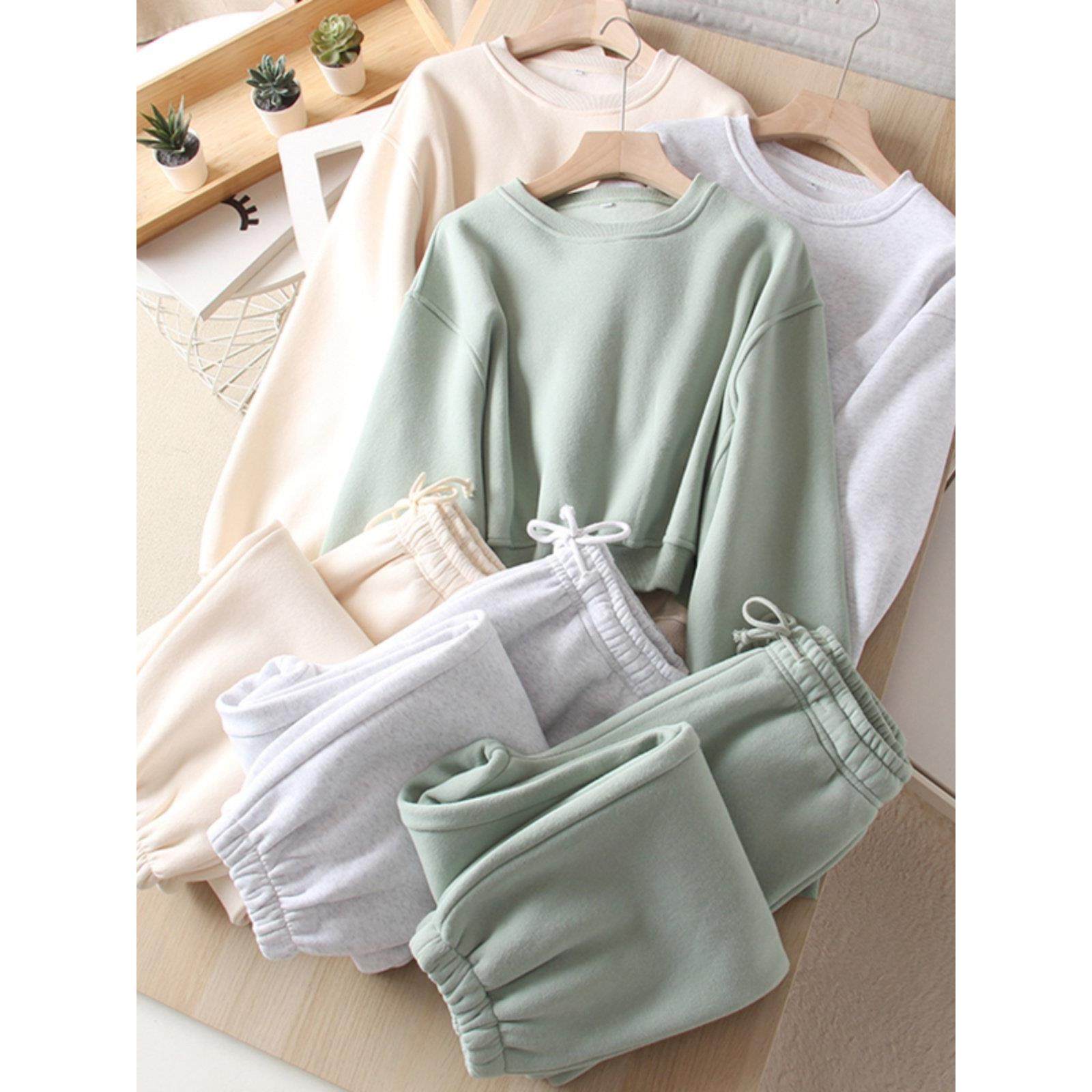 - 加绒卫衣套装 女