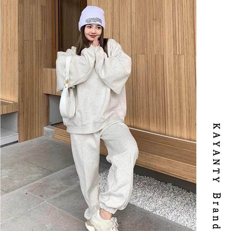 KAYANTY高级感休闲运动套装女秋冬款加绒加厚卫衣复古两件套减龄
