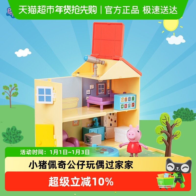 小猪佩奇场景玩具屋速开收纳房子女孩佩琪公仔玩偶宝宝过家家玩具