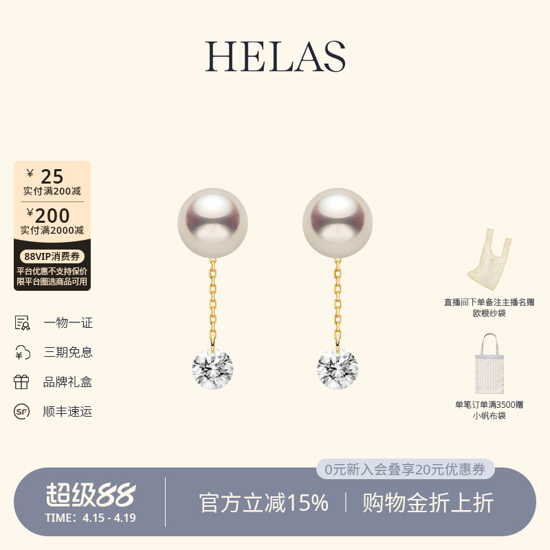 HELAS赫拉流动系列淡水珍珠耳坠女14K金耳钉女培育钻石耳环耳饰
