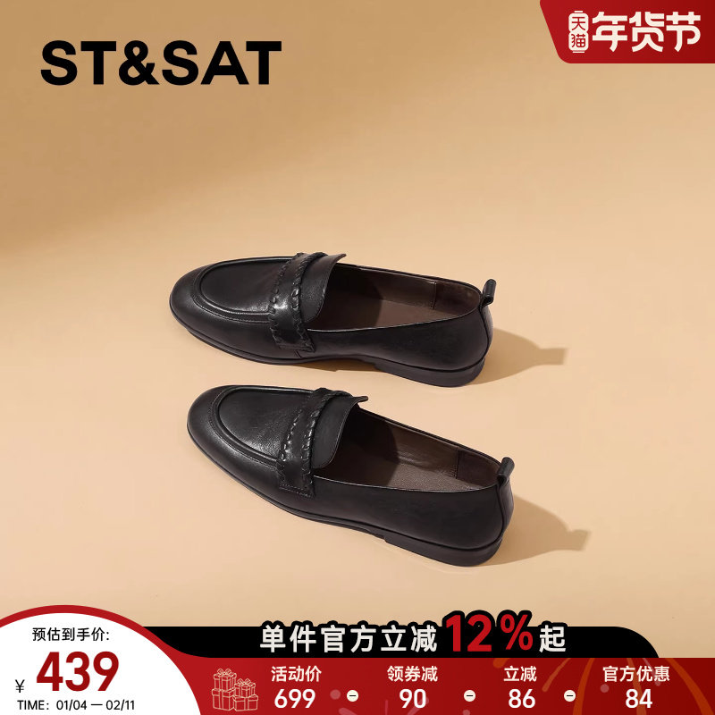 星期六黑色粗跟软底舒适乐福鞋2025年秋季新款时尚百搭小皮鞋女鞋