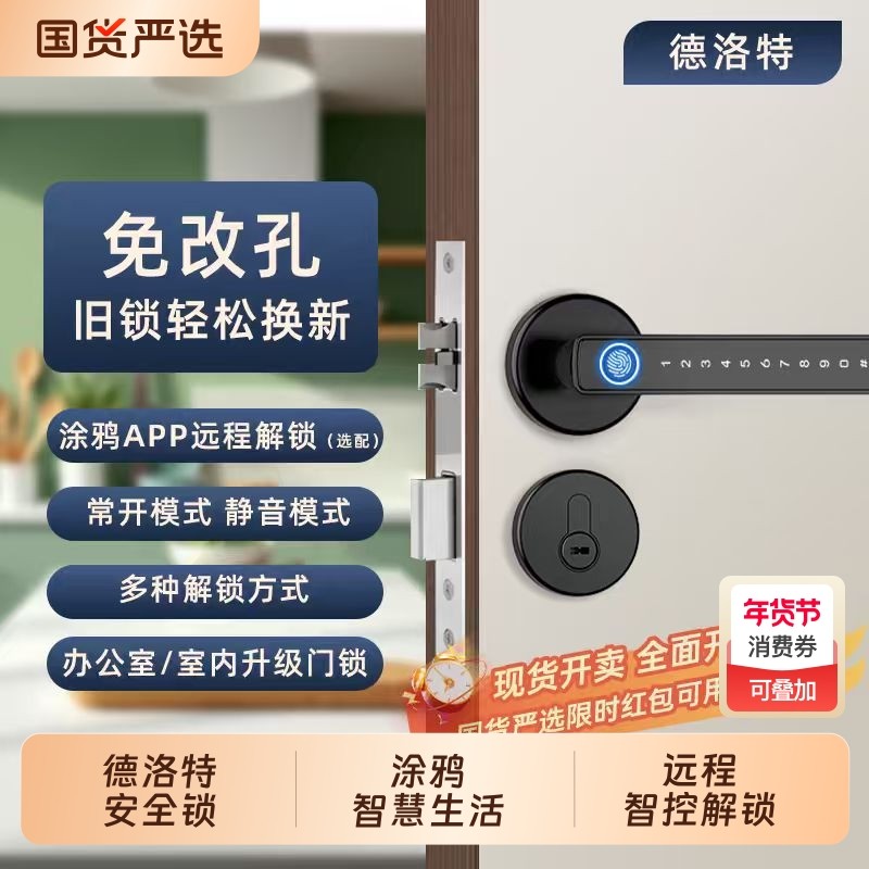 免开孔室内指纹锁密码门锁木门家用电子锁房门智能刷卡办公室公寓