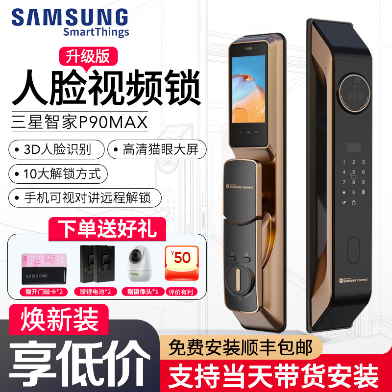 三星智家P90MAX智能锁3D人脸识别猫眼可视大屏家用指纹锁密码门锁