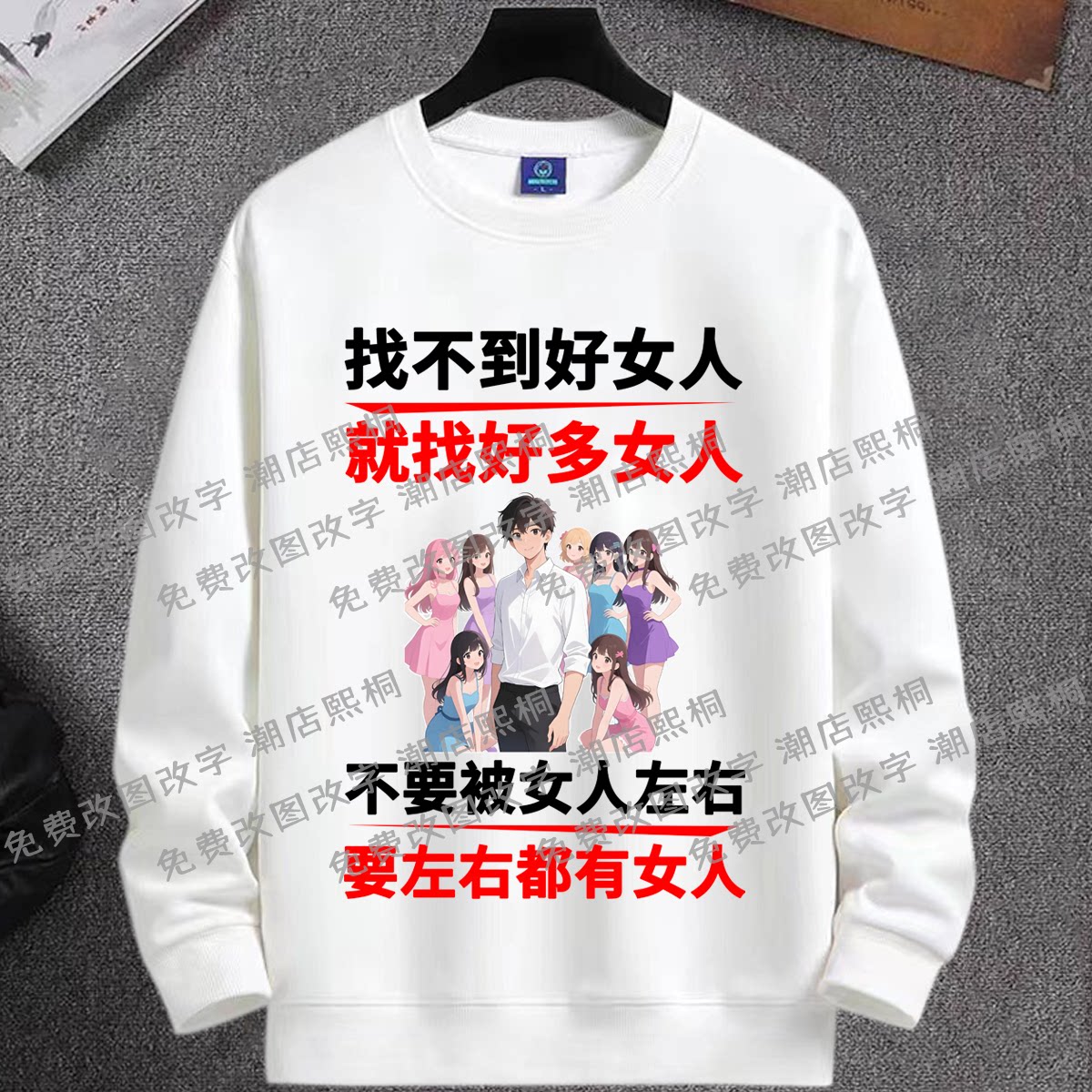 找不到好女人就找好多女人搞笑文字圆领卫衣男女长袖百搭秋季衣服